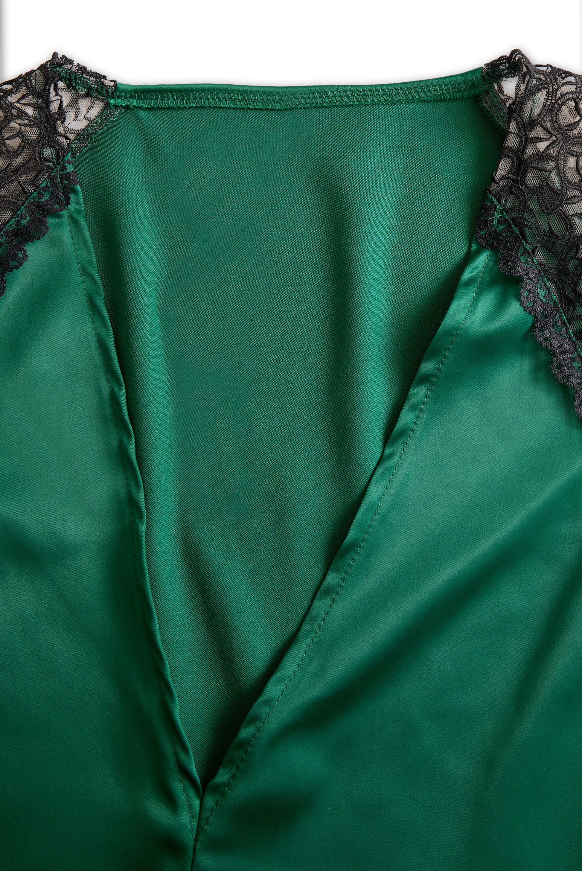 KSXTXX presents the Deep V-Neck Satin Blouse with Lace Details - Emerald Allure to elevate your sophisticated look.Discover elegance with our Deep V-Neck Satin Blouse, featuring exquisite lace detailing on the shoulders for a touch of sophistication. This stunning emerald green top is crafted from luxurious satin, offering a silky smooth feel and a flattering drape.