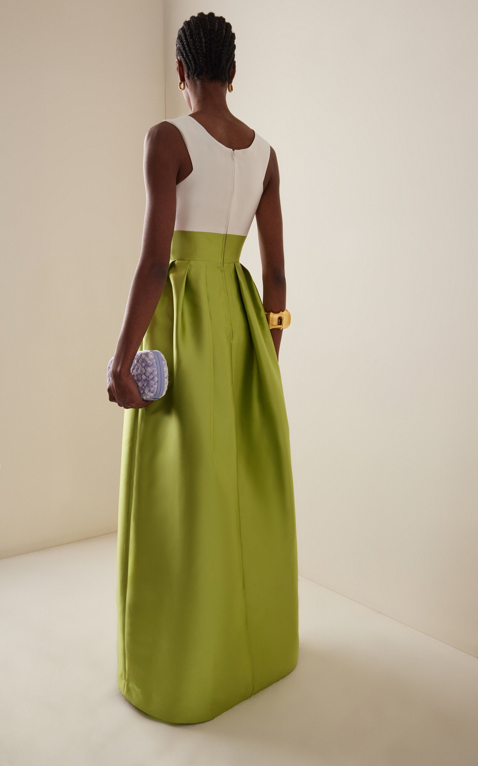 Design features: Sleeveless, V-neck, Color-blocking, Maxi length