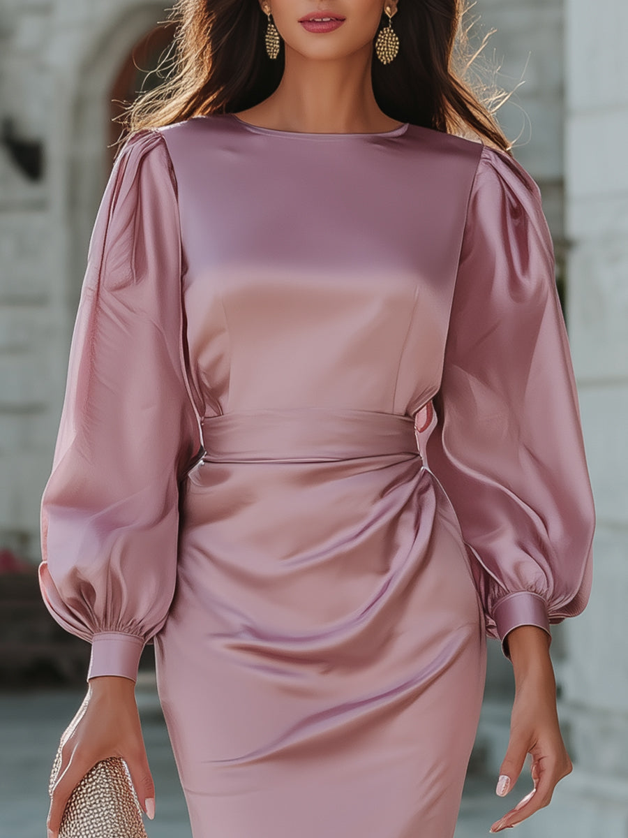 Satin Puff Sleeve Waist-Defined Mini Dress