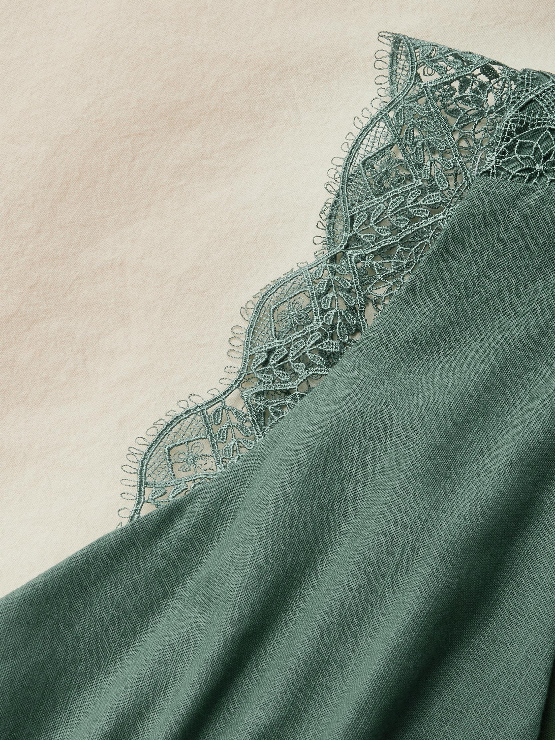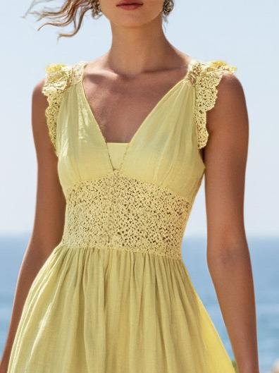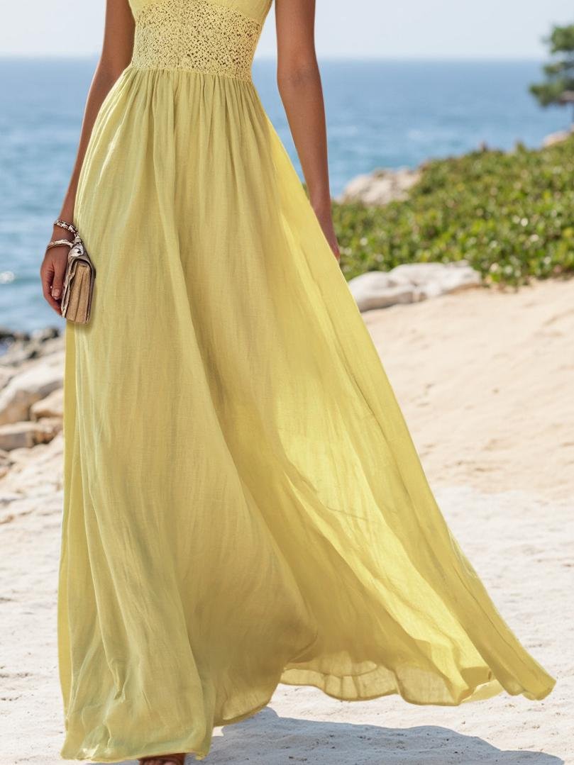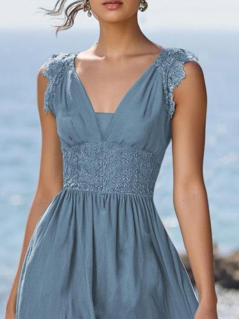 (SIZE:XS-XXL)Linen Maxi Dress, Sleeveless, V neck, Plain, Vintage, Cyan
